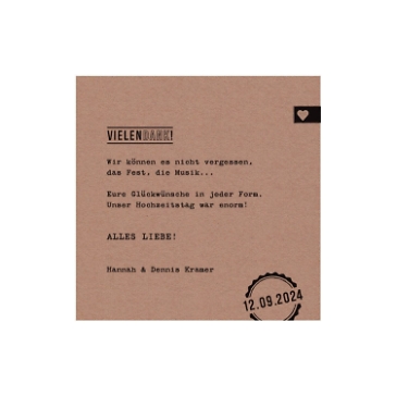 Klassische Dankeskarte oder auch als Save-the-Date-Karte verwendbar.