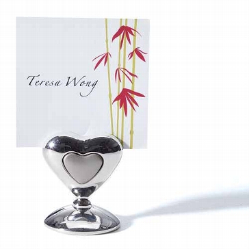 Der silberfarbende Tischkartenhalter ist gleichzeitig ein wunderschönes Dankeschön an die Hochzeitsgäste. Nach den Tischkärtchen können später z.B. Fotos gehalten werden.
