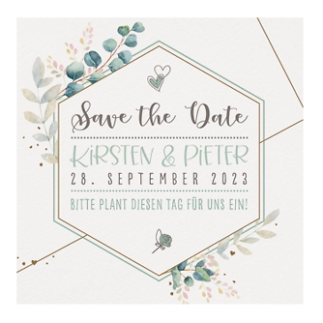 Save the Date Karte mit Blätterdesign auf Aquarellpapier